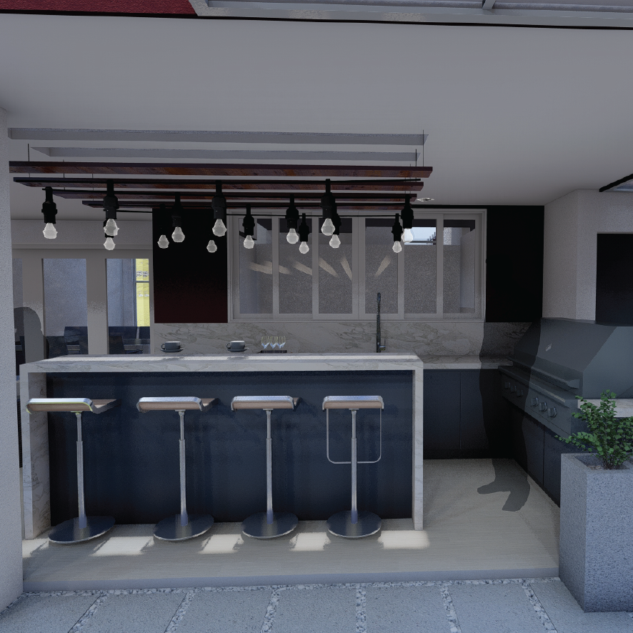 Concepto y Evolución Familiar: El proyecto surge de una necesidad vital: liberar una habitación interna para la nueva integrante de la familia, trasladando el Home Office hacia el exterior. Nuestra respuesta fue crear un espacio multifuncional donde los padres pueden trabajar en un entorno profesional mientras supervisan el juego de su hija. La distribución se basa en la transparencia y la conexión visual, asegurando que la productividad y la convivencia familiar coexistan en un mismo ambiente diseñado a medida.