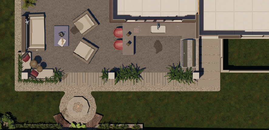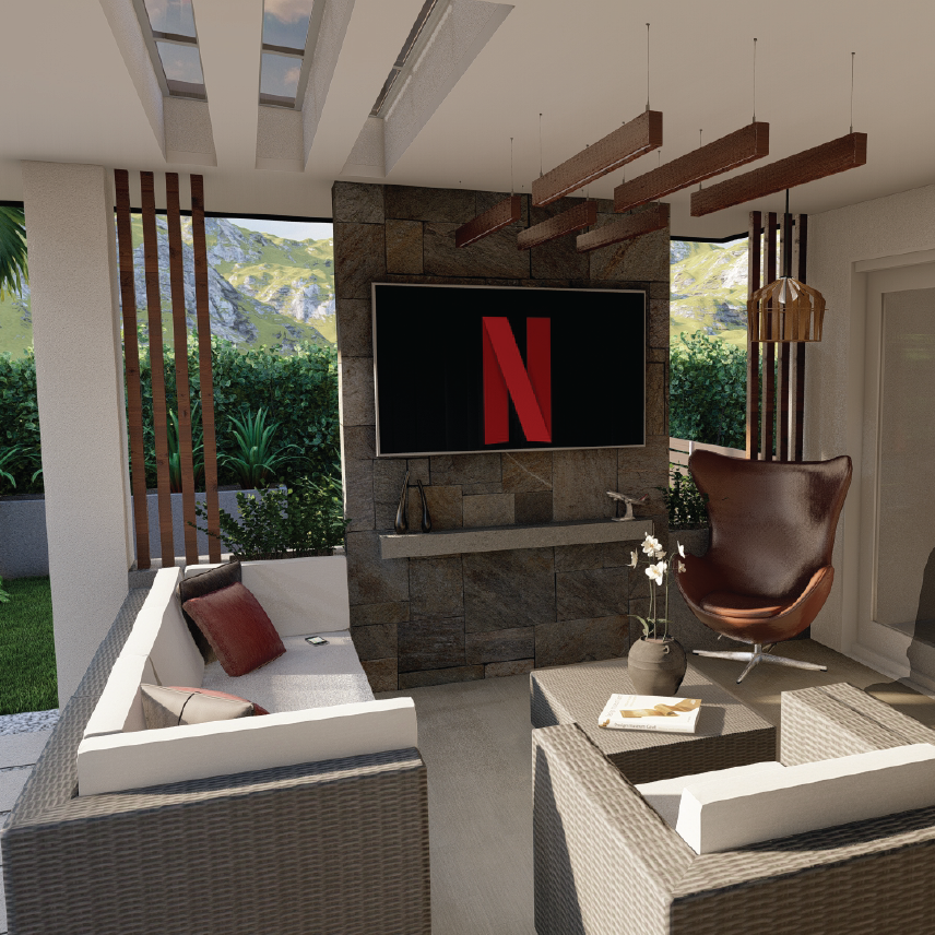 El concepto principal de la intervención en La Riviera A6 se centra en la optimización de un área exterior subutilizada para convertirla en el nuevo núcleo social de la residencia. La propuesta de AAZDSGN busca la fluidez absoluta entre el interior y el exterior, introduciendo un "fire pit" central que actúa como eje de convivencia, rodeado de una atmósfera que equilibra la calidez doméstica con un estilo industrial moderno.
