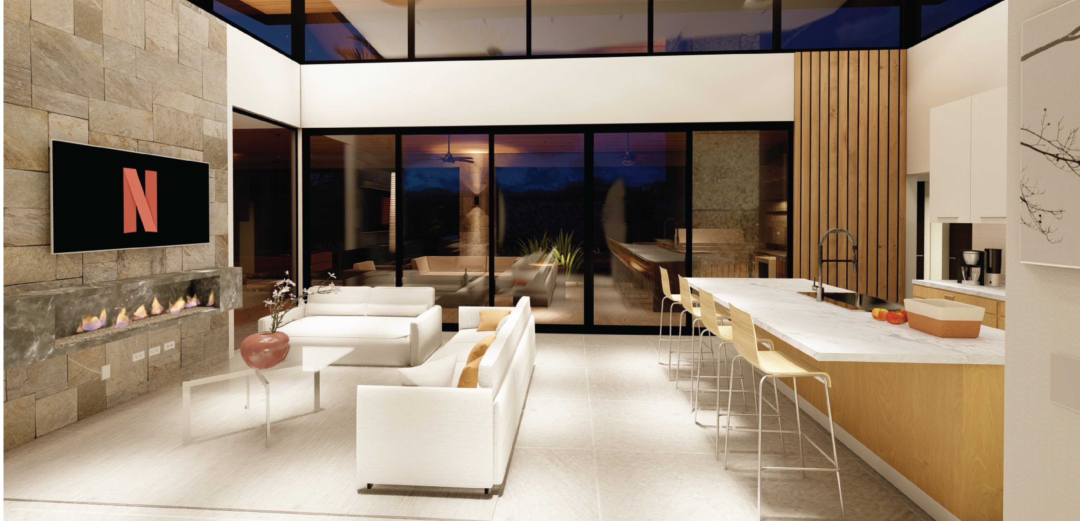 Esta relación fluida entre interior y exterior, junto con el uso de estrategias pasivas de diseño, garantiza un hogar luminoso, fresco y acogedor durante todo el año.
