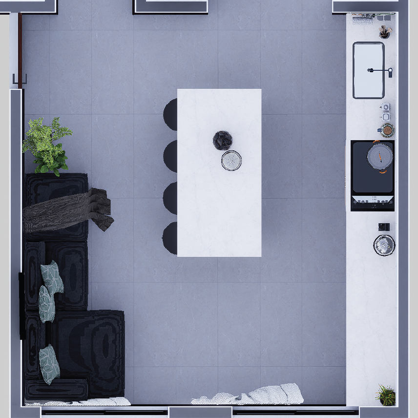 El diseño se articula alrededor de una isla central de grandes dimensiones, concebida como el "atelier" de producción, permitiendo un flujo de trabajo ergonómico para el horneado profesional mientras mantiene la conexión visual con las áreas sociales. Se incorporó una alacena de alta capacidad y una zona de TV integrada, logrando que el espacio sea productivo durante las horas de trabajo y acogedor durante los momentos en familia. El resultado es un ambiente luminoso y fluido que demuestra que la eficiencia técnica y la calidez del hogar pueden convivir en perfecta armonía.
