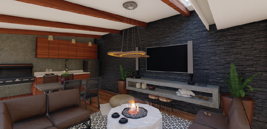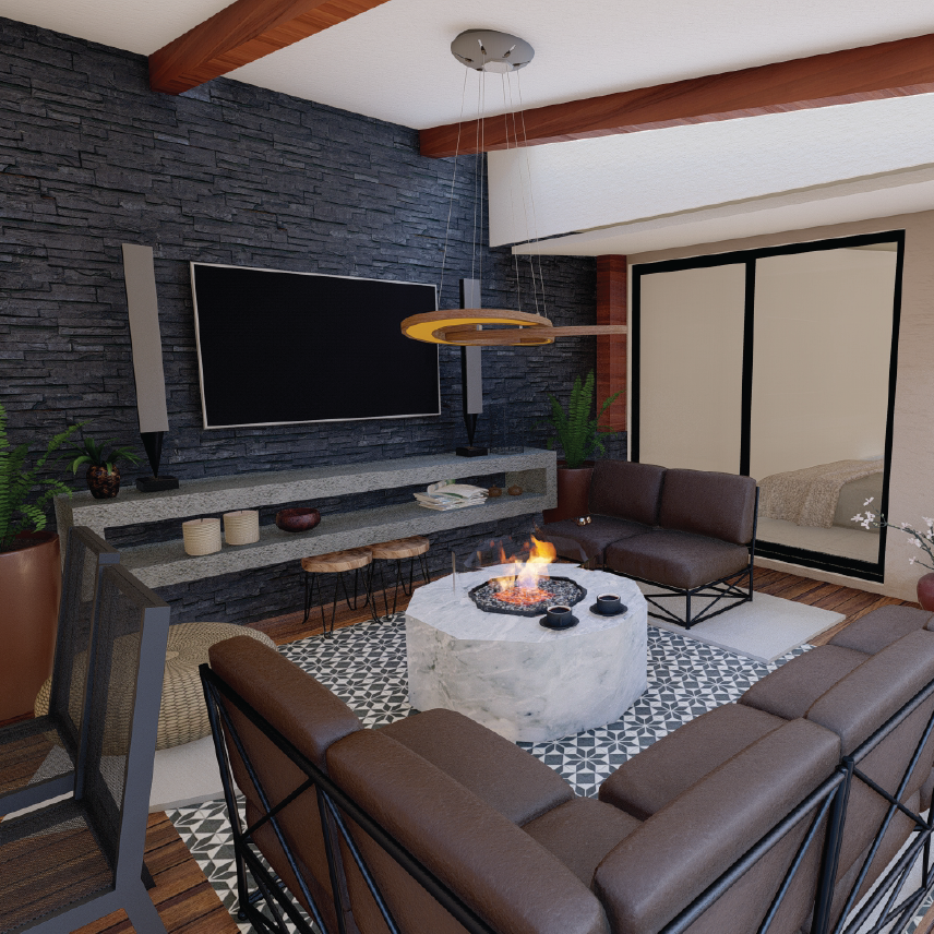 En el área exterior, la intervención se centró en la recuperación espacial. Anteriormente dominada por una lavandería expuesta, la terraza fue renovada mediante un diseño que oculta visualmente los servicios, priorizando un ambiente de descanso y convivencia. La incorporación de un fire pit y el uso de materiales naturales crean un refugio exterior cálido y sofisticado. El resultado es una vivienda donde cada rincón ha sido pensado para el confort, logrando una armonía perfecta entre funcionalidad técnica y calidez material.