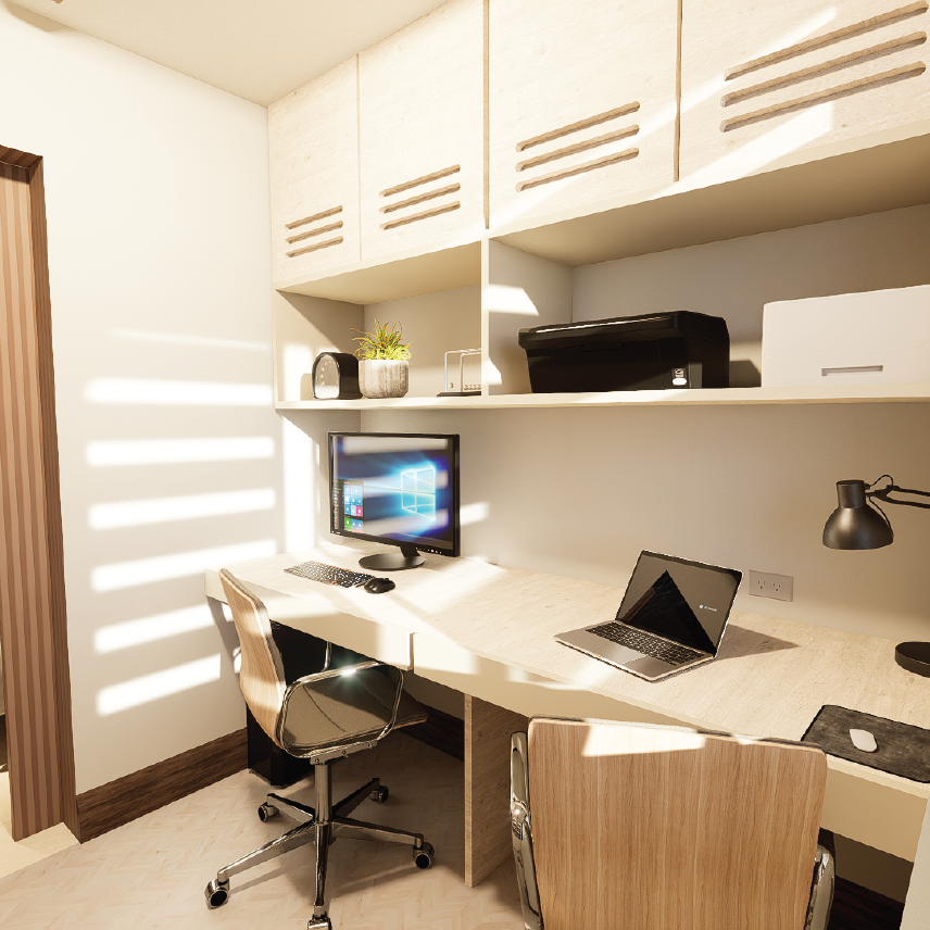 El proyecto se centra en la reconfiguración integral de dos niveles para alinear la infraestructura con las demandas del trabajo remoto y la autonomía familiar. En el primer nivel, la cocina y el baño de visitas se renuevan bajo un lenguaje de modernización de acabados y optimización de flujo. Se incorporó un nuevo diseño de mobiliario a medida en la terraza y lavandería, integrando soluciones de almacenamiento inteligente y materiales de alta durabilidad como el cuarzo y melaminas ventiladas.En la planta alta, la arquitectura responde a la necesidad de privacidad mediante la creación de dormitorios independientes con closets integrados que maximizan cada metro cuadrado. El dormitorio principal se extiende para albergar una oficina privada, un refugio ergonómico que garantiza confort térmico y lumínico, logrando un equilibrio perfecto entre la vida personal y el desempeño profesional