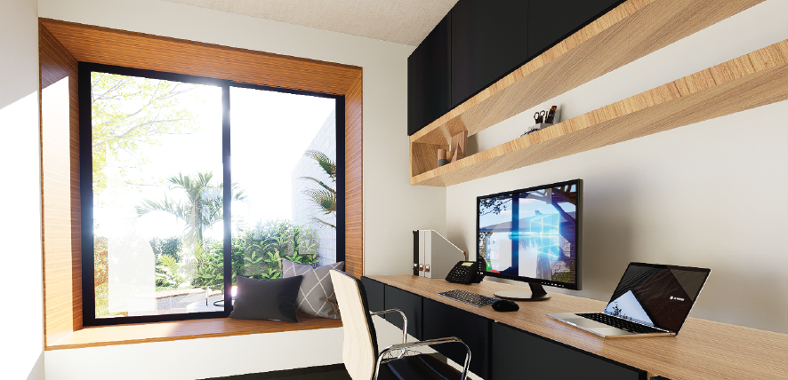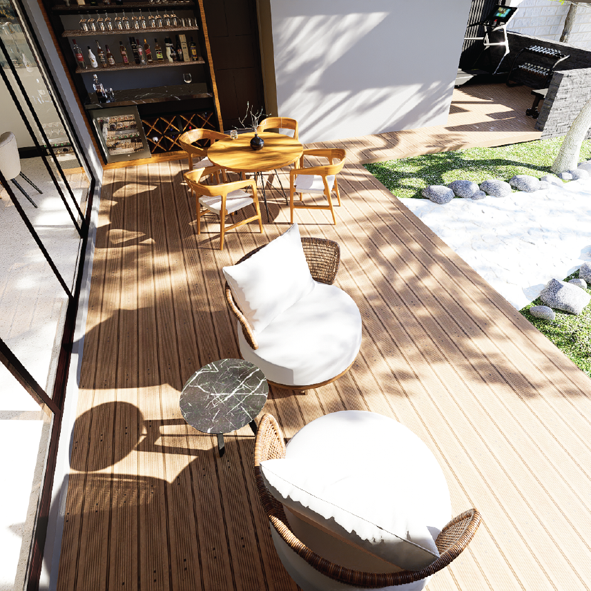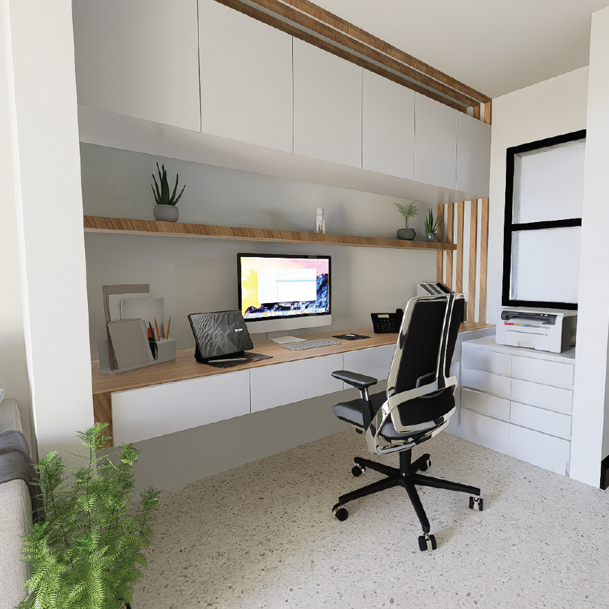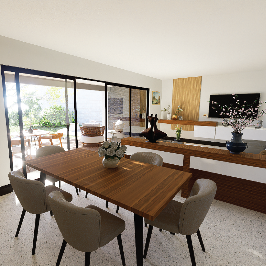 La intervención en Casa Zero se centra en la liberación del espacio. Mediante una reconfiguración estratégica, se unificaron la sala, el comedor y la terraza, eliminando barreras visuales para crear un ambiente continuo y multifuncional. El diseño integra áreas especializadas como un gimnasio privado y una doble oficina, respondiendo a las dinámicas contemporáneas de bienestar y productividad desde el hogar.