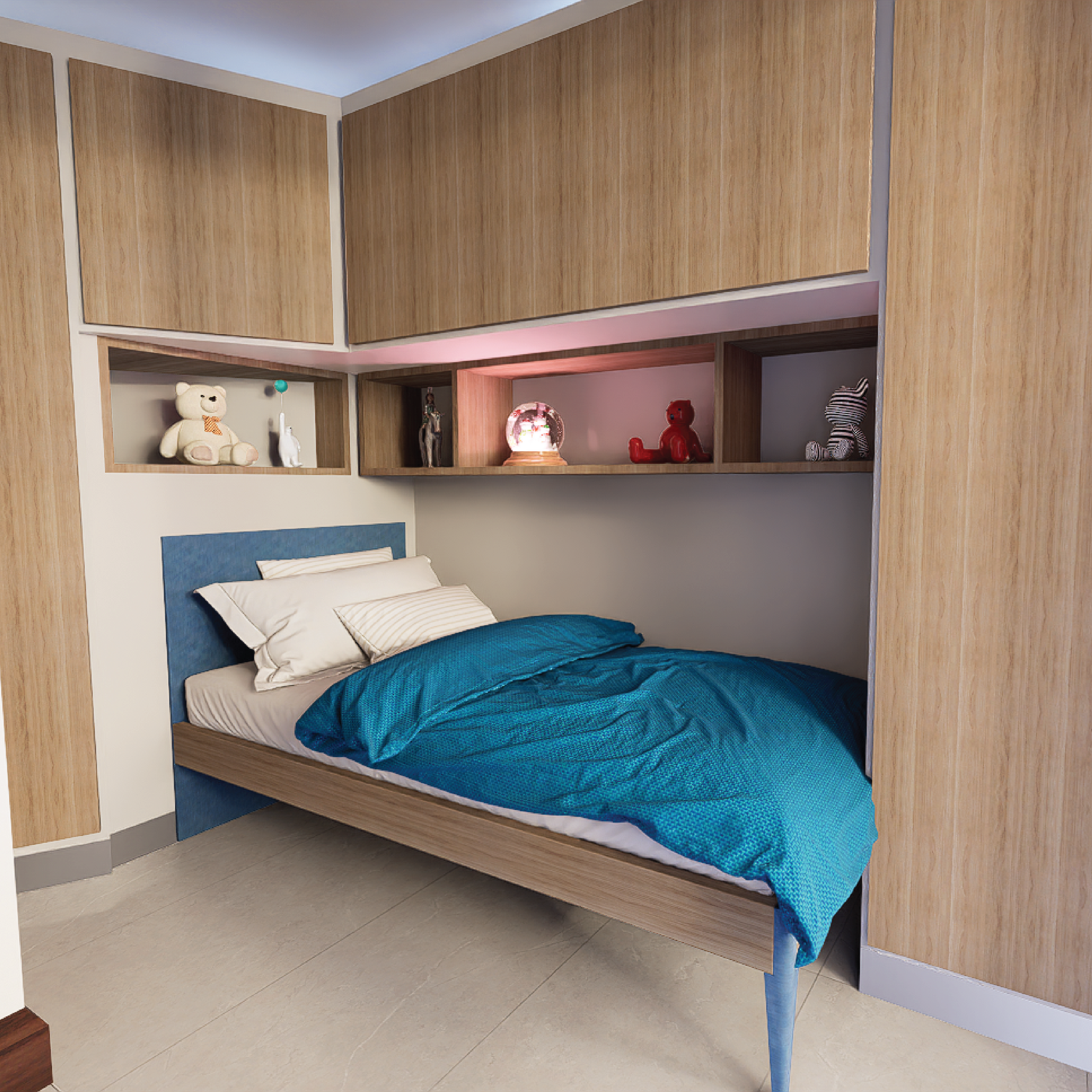 Se aprovechó al máximo el espacio disponible, sin perder fluidez ni ligereza. El mobiliario a medida no solo resolvió necesidades prácticas, sino que añadió carácter y personalidad a cada ambiente, permitiendo que cada habitación se adapte al ritmo y estilo de vida de quienes la usarán. Cada mueble encaja como si siempre hubiera estado ahí, creando una sensación de orden, serenidad y pertenencia.